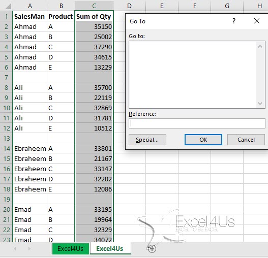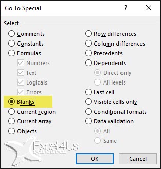 و ذلك حتى يقوم الاكسيل بتحديد فقط الأسطر الفارغة